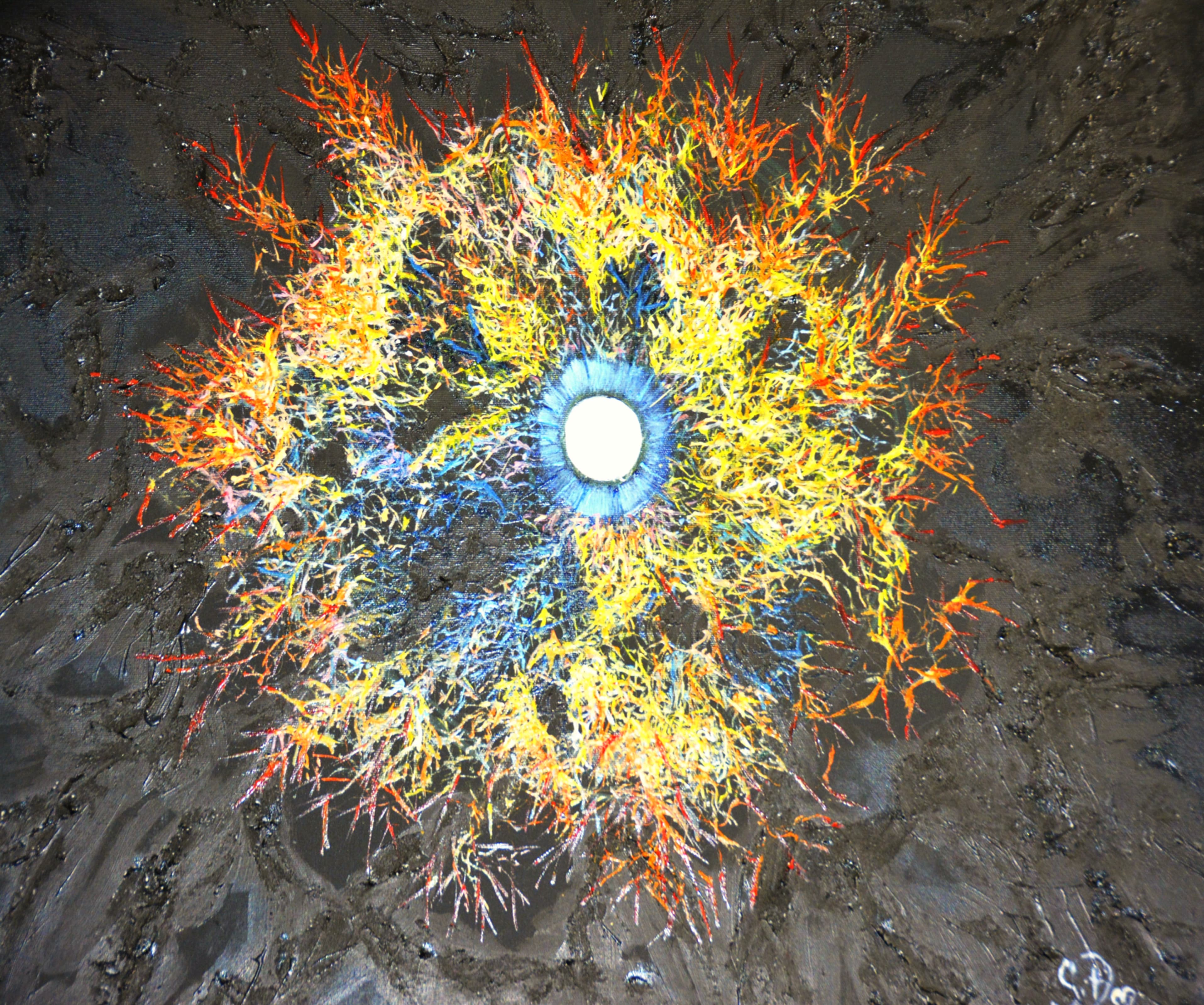 La inceput, era un loc unde totul exista. insa, tocmai pentru ca exista totul, nimic nu era definit. Posibilitatea ca un lucru sa fie era egala cu posibilitatea ca acel lucru sa nu fie. Apoi a aparut El. Cu prezenta Sa, a rupt acest echilibru perfect intr-un singur punct. Din acel punct, s-a nascut o posibilitate. Aceasta posibilitate a deschis calea altora, generand un univers de noi existente. El era alb – o lumina pura, ce continea toate culorile. Din alb s-a nascut albastrul, prima reflexie a creatiei. Albastrul, la randul sau, a dat nastere altor nuante – galbenul, care se aseza la mijlocul spectrului, aducand echilibru. Dar in umbra pandeste mereu negrul – vast, aproape infinit. Totusi, acolo unde intunericul ameninta sa inghita totul, aparea rosul. Rosul, intens si neobosit, lupta sa scoata existenta din inexistenta. Uneori reusea, alteori efortul sau era in zadar. Astfel, albul ce a creat albastrul, care a dat nastere galbenului, iar apoi rosul ce rezista negrului, formeaza esenta posibilitatii noastre de a exista. Acesta este inceputul universului, al luminii si al umbrelor – o poveste a culorilor, a echilibrului si a luptei pentru existenta.
